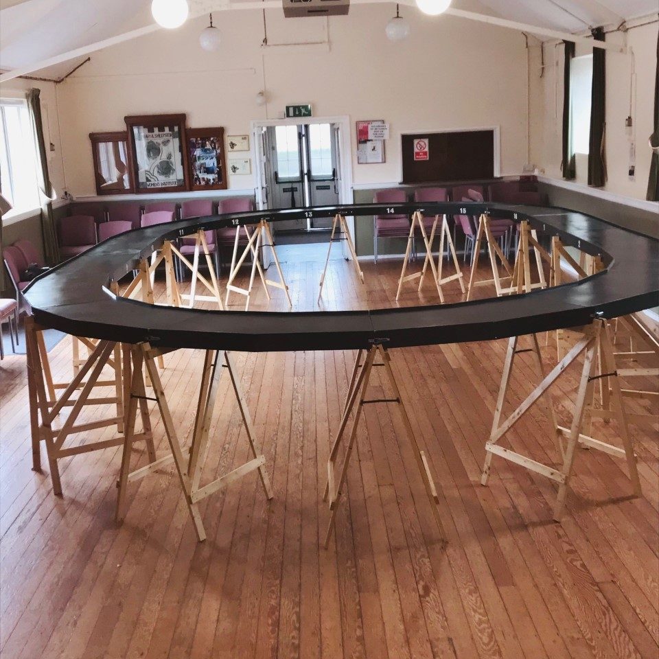 The new test track is now up and running at Miles Mitchell Hall. 4-road track that can be used for finescale and Scale 7 , DC or DCC. Many thanks to all those involved in planning, construction and delivery