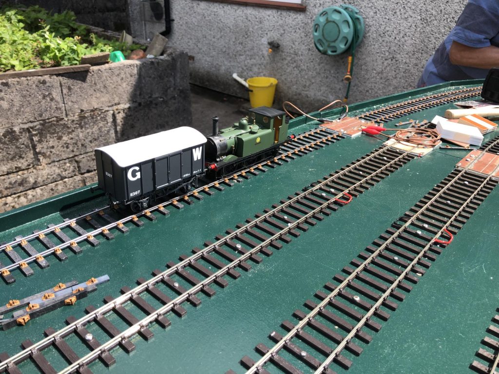 The photographs show the test run on the first 3 sections laid of the S7 track on the new Plymouth Gauge 0 Group test track.